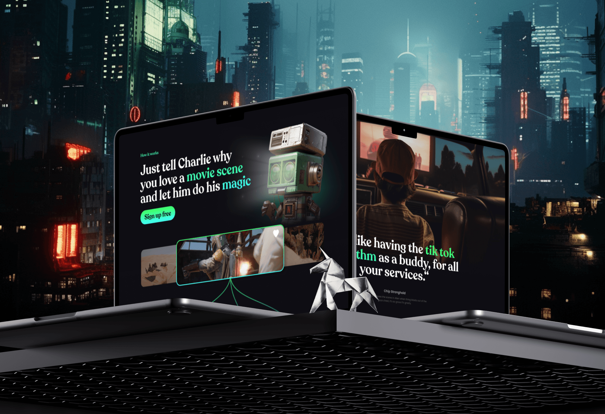 The UI was full of easter eggs paying tribute to 80s sci-fi—Blade Runner, Alien, the good stuff. We built a chat-based interface where users could generate scenes, nothing too wild functionally, but visually it felt tight, polished, and cinematic.