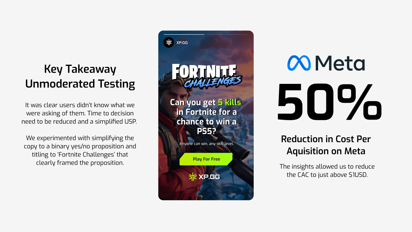 A big push went into improving the mobile experience, since most of our funnel traffic was coming from Meta ads. I even dipped into ad creative myself—yep, another product guy yelling about marketing. But hey, one concept halved our cost per acquisition by reframing the value prop as a simple “effort vs reward” binary.